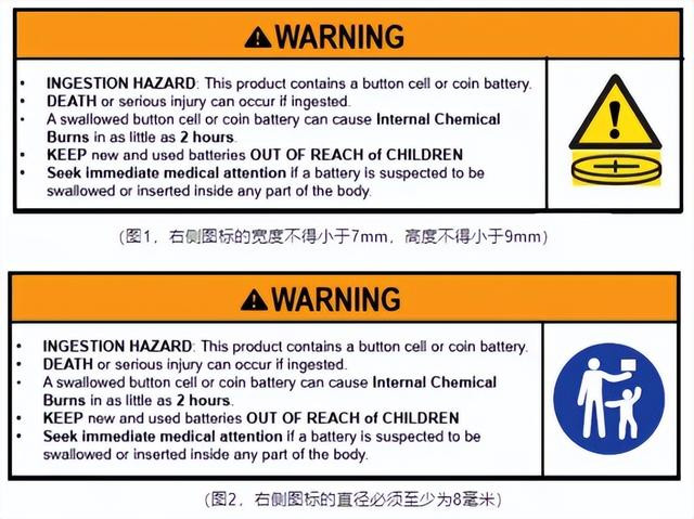 同时,这些包含纽扣电池的产品,在产品说明书、包装上都需用英文标注吞咽危险警告,类似下面这种: